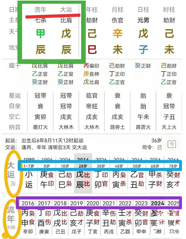 例如2025–2035年行“戊辰”大运,2035年后换“丁卯”大运