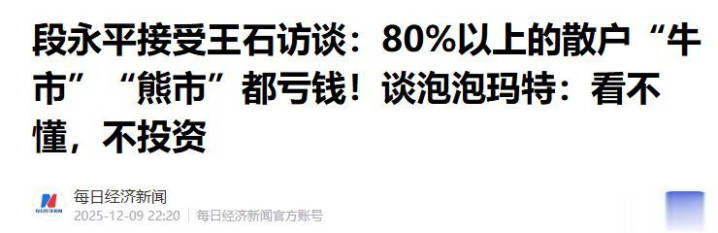 逐日经济——段永平收受王石访谈:80%以上的散户“牛市”“熊市”齐亏钱!谈泡泡玛特:看不懂,不投资