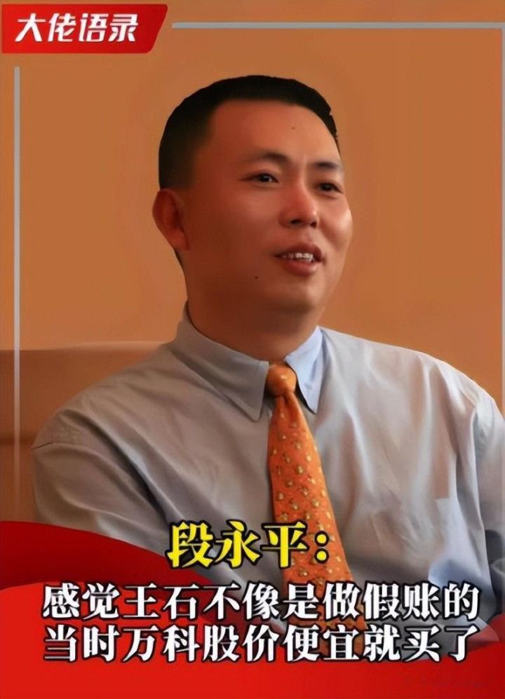 就像20年前,段永平见他一面,且归就买了万科股票。