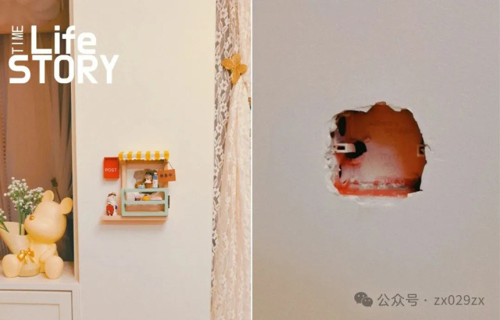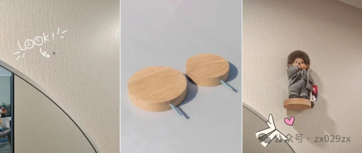 如若墙面有装配打孔无法盖住,如若有扩展管,此时不错购买这种小的隔板,径直拧上即可,摆上排场的公仔,亦然一种粉饰。