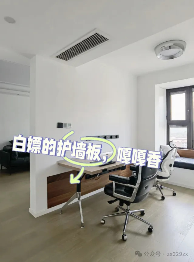 家里剩余的板子废料运用,刚好贴在书桌下方,谨防踢脏墙面。