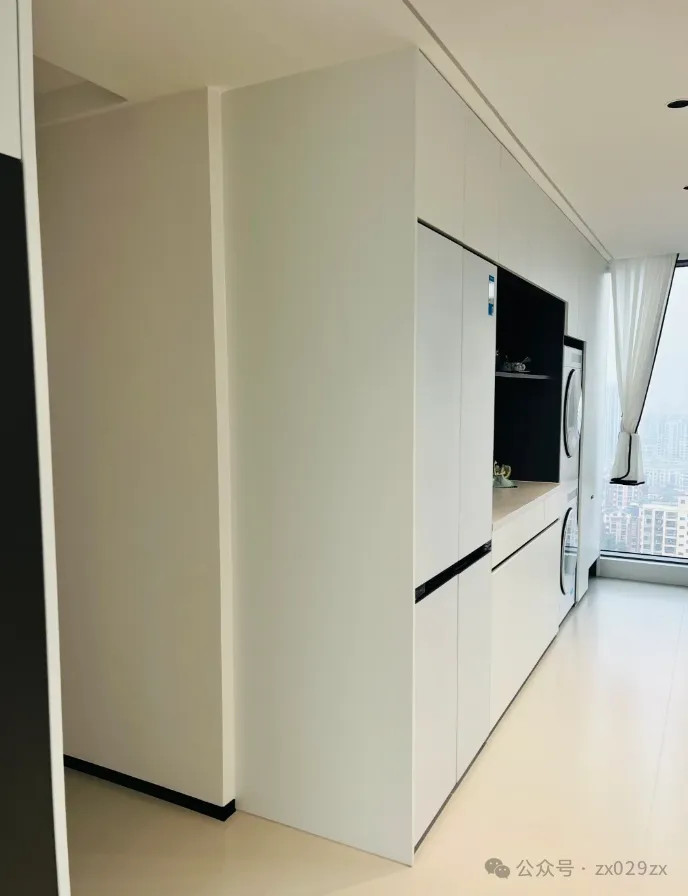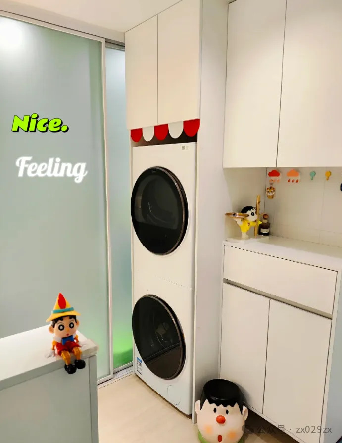 前期念念好要预留一个洗袜子机,入住以后嗅觉莫得必要,适度墙面就留个出丑的洞,太出丑了,也很难堵。网购一个小木门遮挡一下,况兼还能起到粉饰作用。